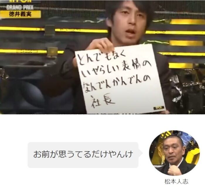 とんでもなくいやらしい表情のなんでんかんでんの社長